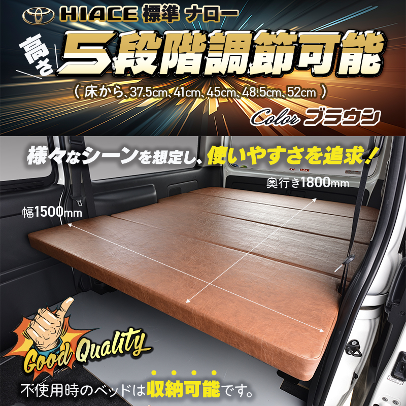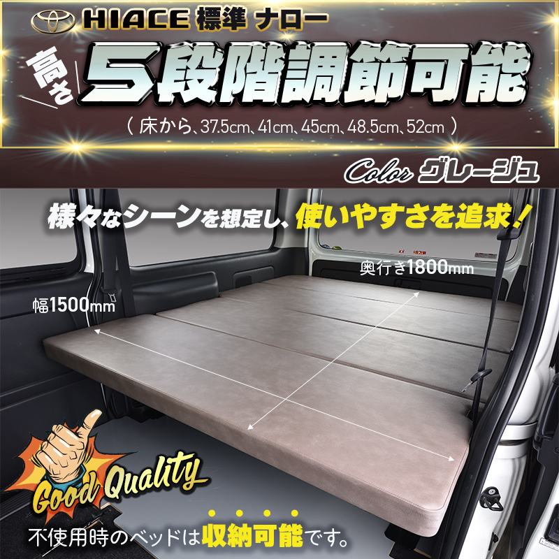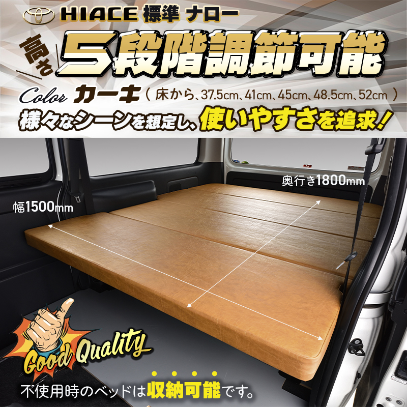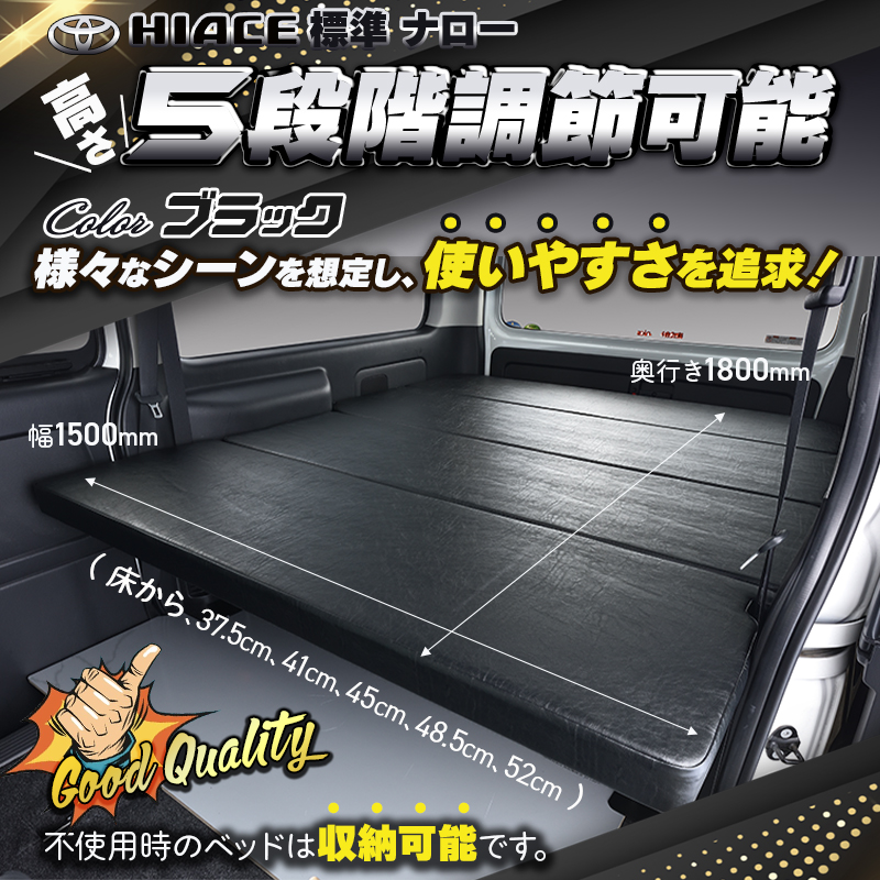 当社のベッドキットは、ハイエース200のボディ(標準・DX・ワイド)により形状が異なるため、